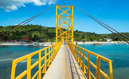 The yellow bridge sets as a connection point between Lembongan Island and Nusa Ceningan, and it’s another point which Ekaja Boat services operate between the two islands.