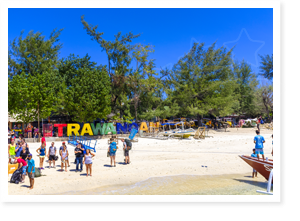 Gili Trawangan Island is the largest one and is attracting many tourists and is just a thirty-minute boat ride from the land of Lombok and we can take daily fast boat from Bali to Trawangan. The Gilis islands were uninhabited thirty years ago and since then it has been growing with its white sand beaches and blue clear waters as well as its beautiful sunset over Lombok’s Mt Rinjani and Bali’s Mt Agung. After being discovered by Burgis citizens from Sulawesi the island was visited by adventurous backpackers becoming it into a paradise destination with a hippy party scene.